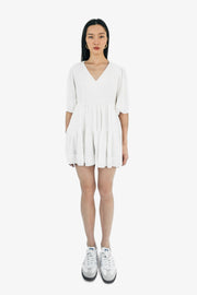 The Amelia Dress is a fresh take on a classic babydoll style dress, made in a softly textured cotton fabric. Featuring voluminous 3/4 sleeves and a full tiered skirt, the style is flattering and romantic. Tie the back opening with a minimal bow and keep any small items in the handy side pockets of the dress. The dress is breathable and entirely lined in 100% cotton. Style it with a mini cross-body and some sandals for a spring summer look or with your favourite boots in the fall and winter.